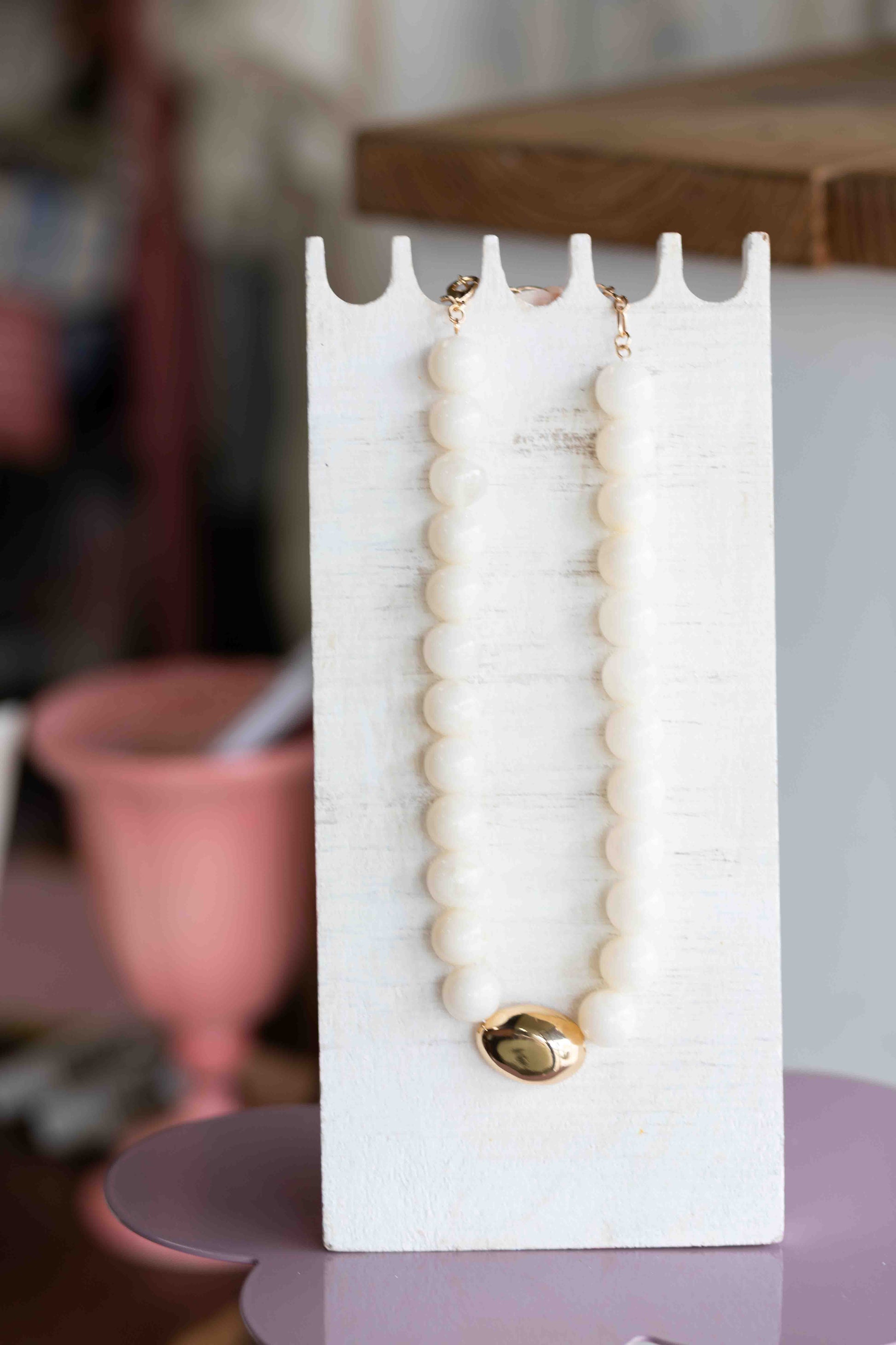 The statement necklace of a neutral girly's dreams!! The Bocan Chunky Beaded Necklace is made of ivory round beads with a bold gold pendant at center!