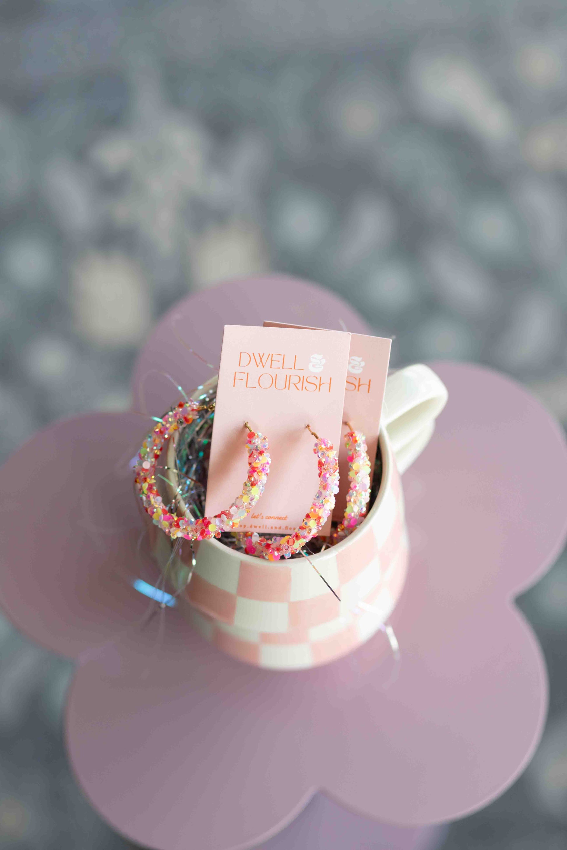 Truly a head-turner! These lightweight fun earrings are all things sparkle and color!