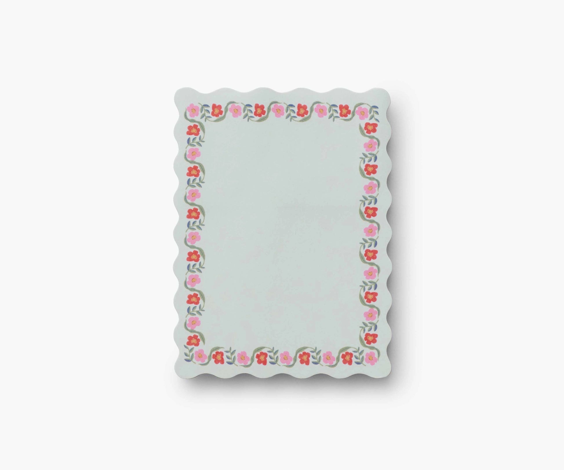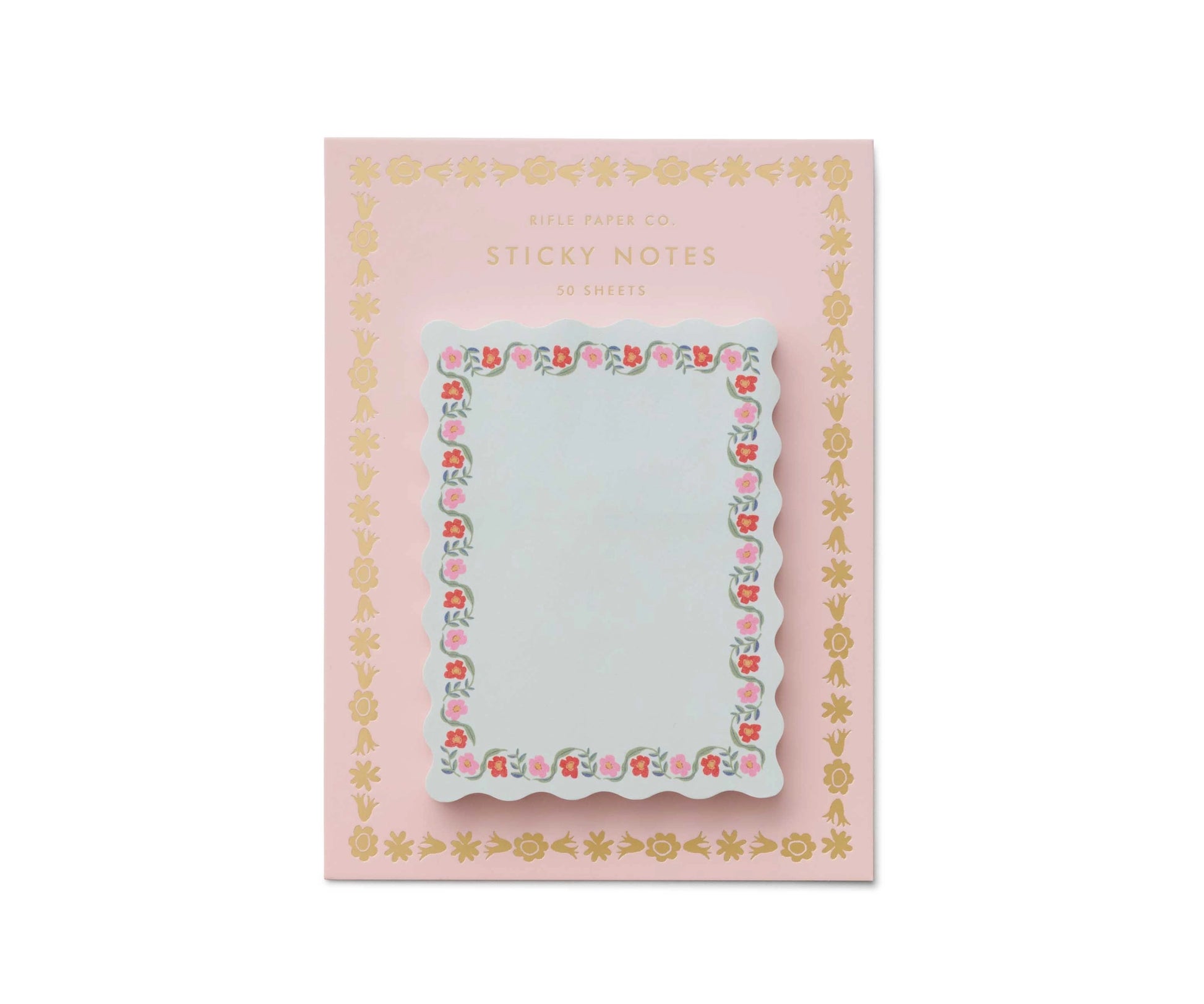 Leave a sweet note with this pad of 50 die-cut sticky notes, bordered in charming Delphine blooms.