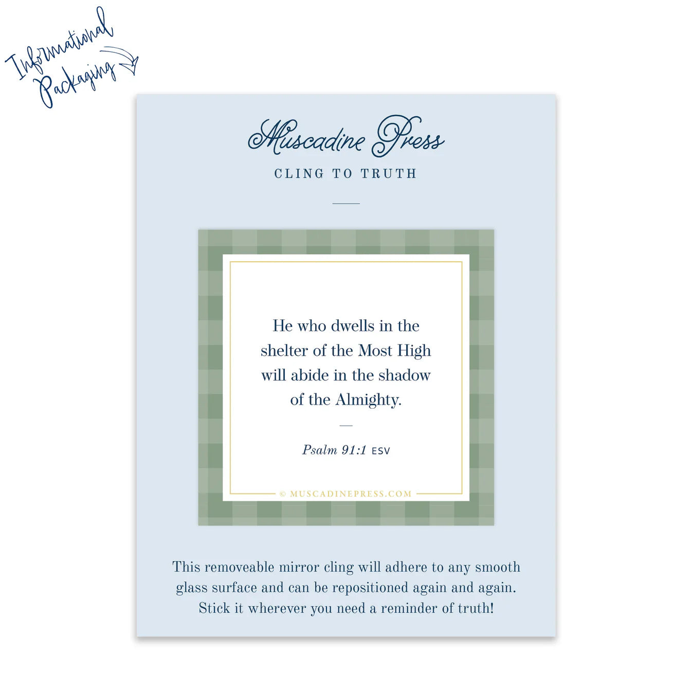 Proudly designed in Mississippi and made in America, these Scripture clings feature verses from the English Standard Version (ESV) Bible—crafted to uplift, encourage, and remind you of God’s truth, even amid busy days.