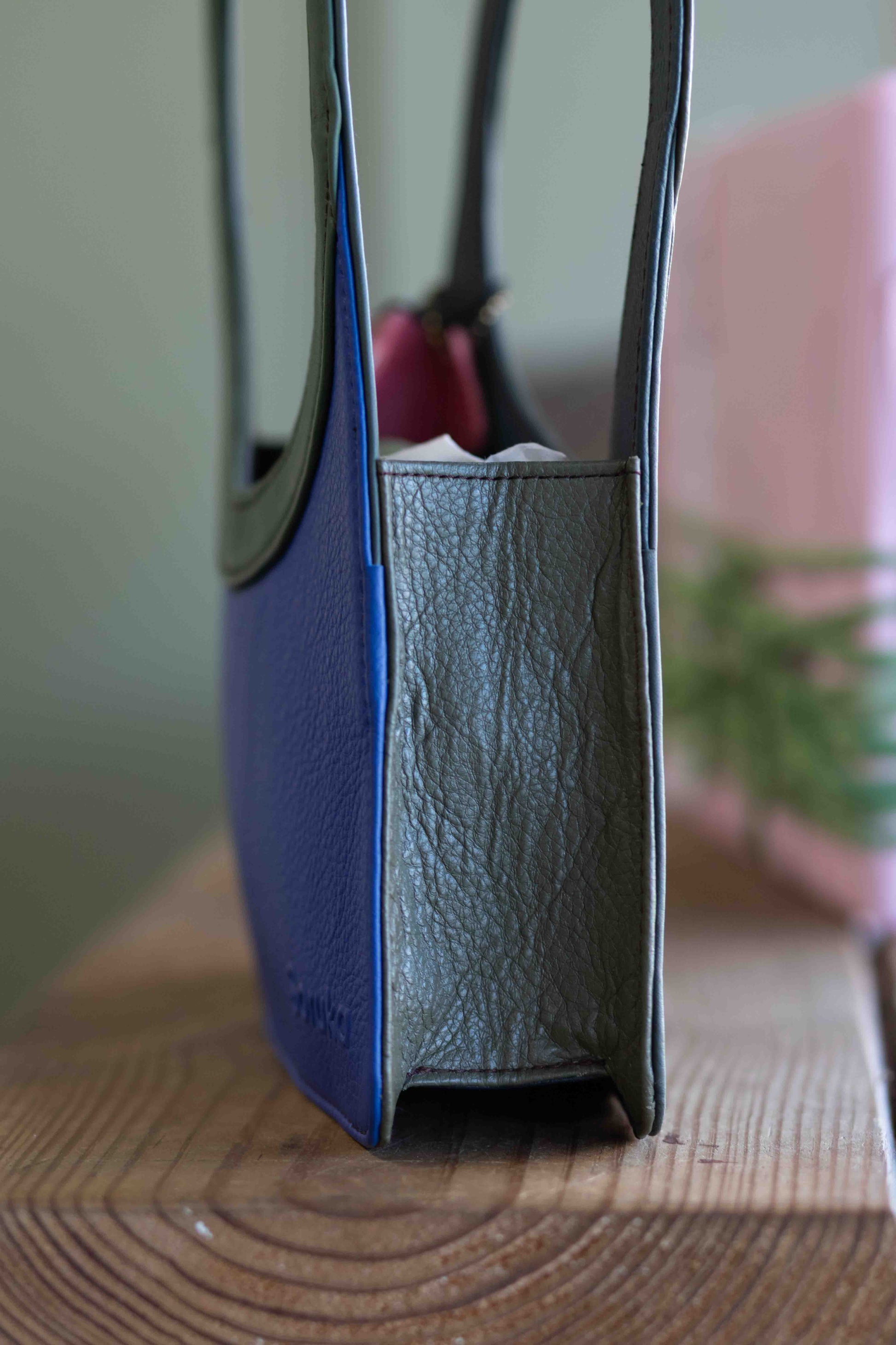 The Honey Handbag is a chic and modern accessory that will stop everyone in their tracks! It's made with a mix of colored leather with two color-ways on each side for a two-in-one bag with a simple flip!