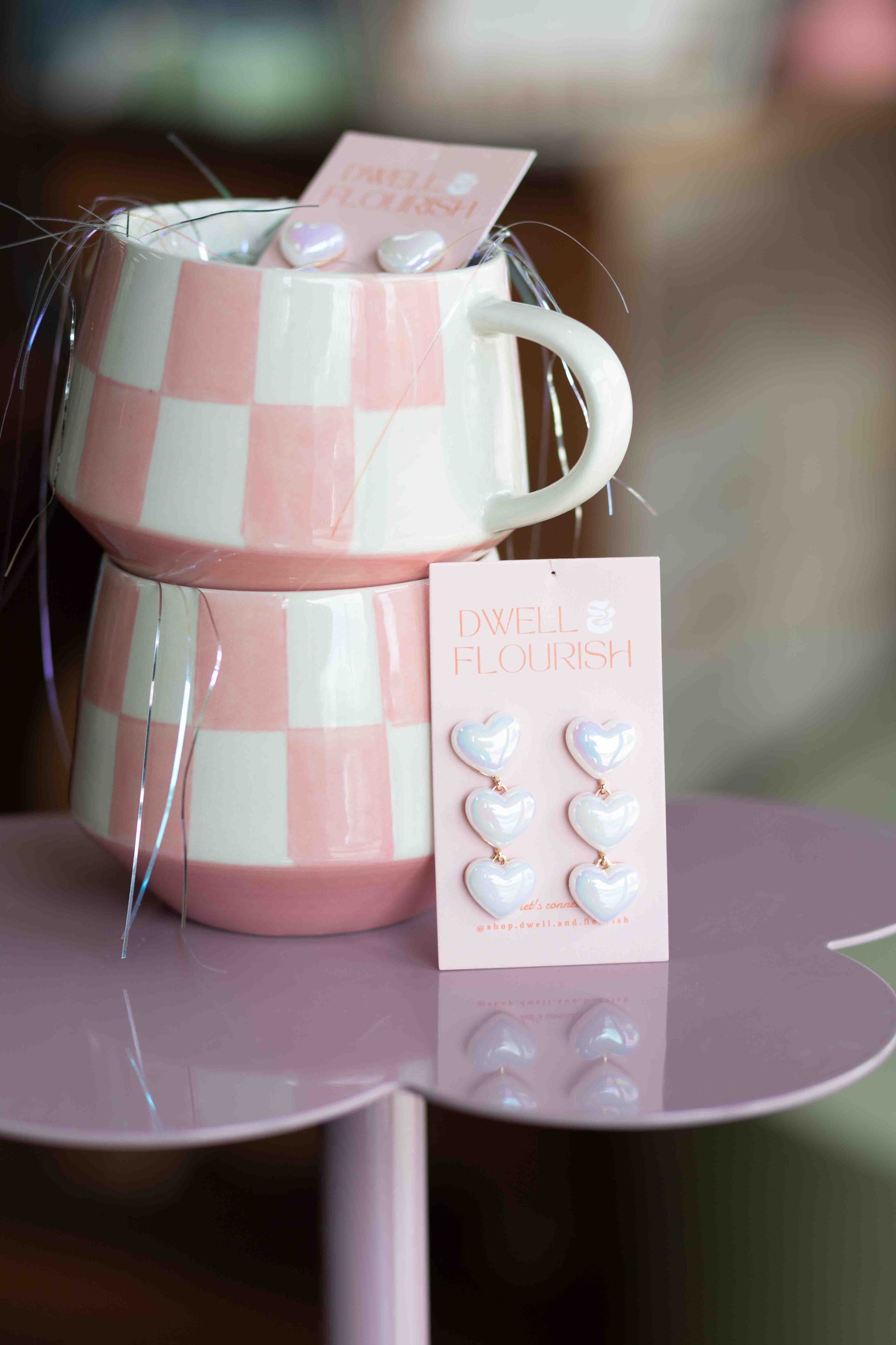 The Lizzie Heart Earrings are for the girls who love a subtle sparkle! These irridecent heart drip earrings stand out effortlessly! Adhere with a stud backing.