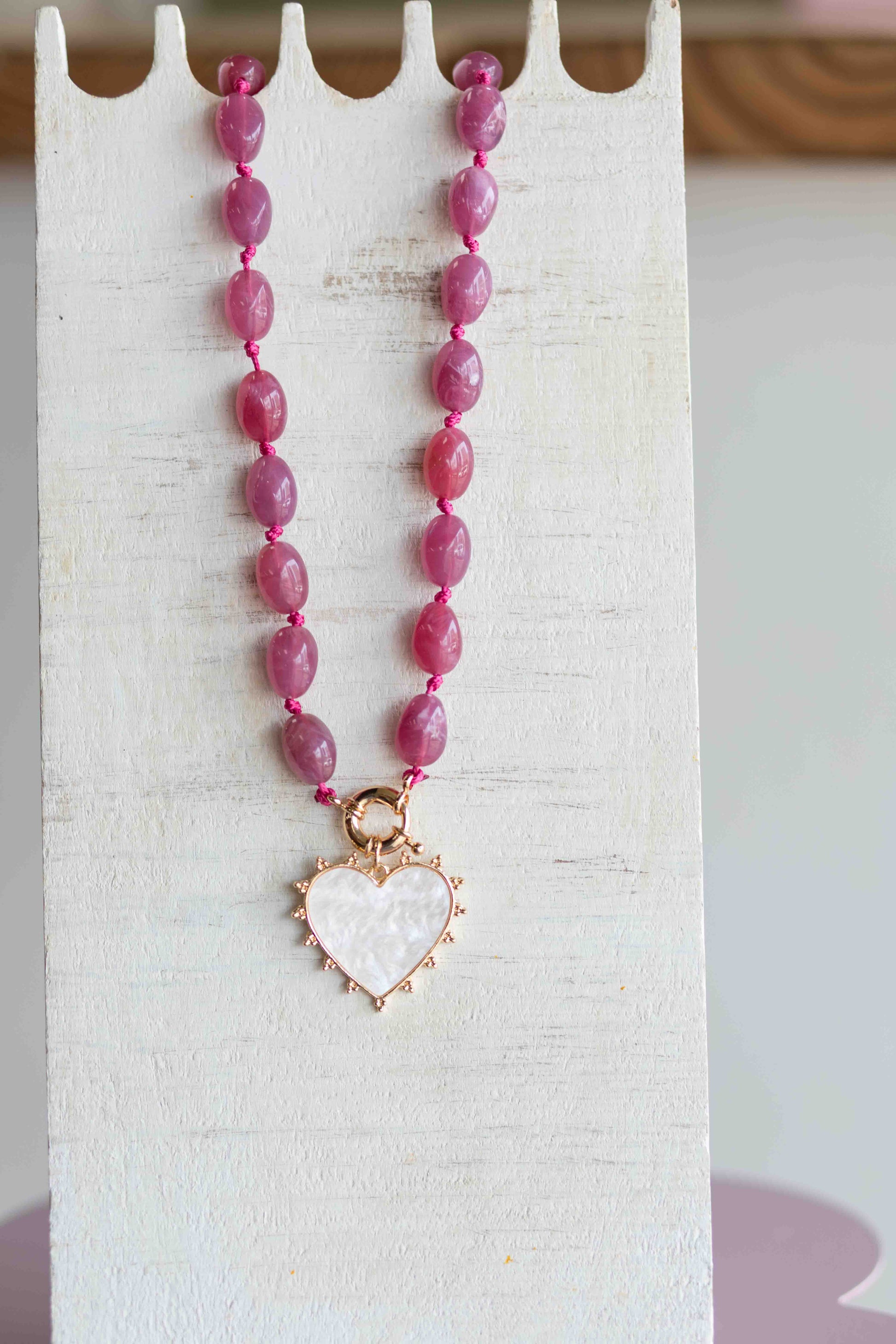 The Luna Necklace is the most fun colored bead necklace with the prettiest pearlescent gold heart pendant! Pick from 3 colors.. or grab them all!