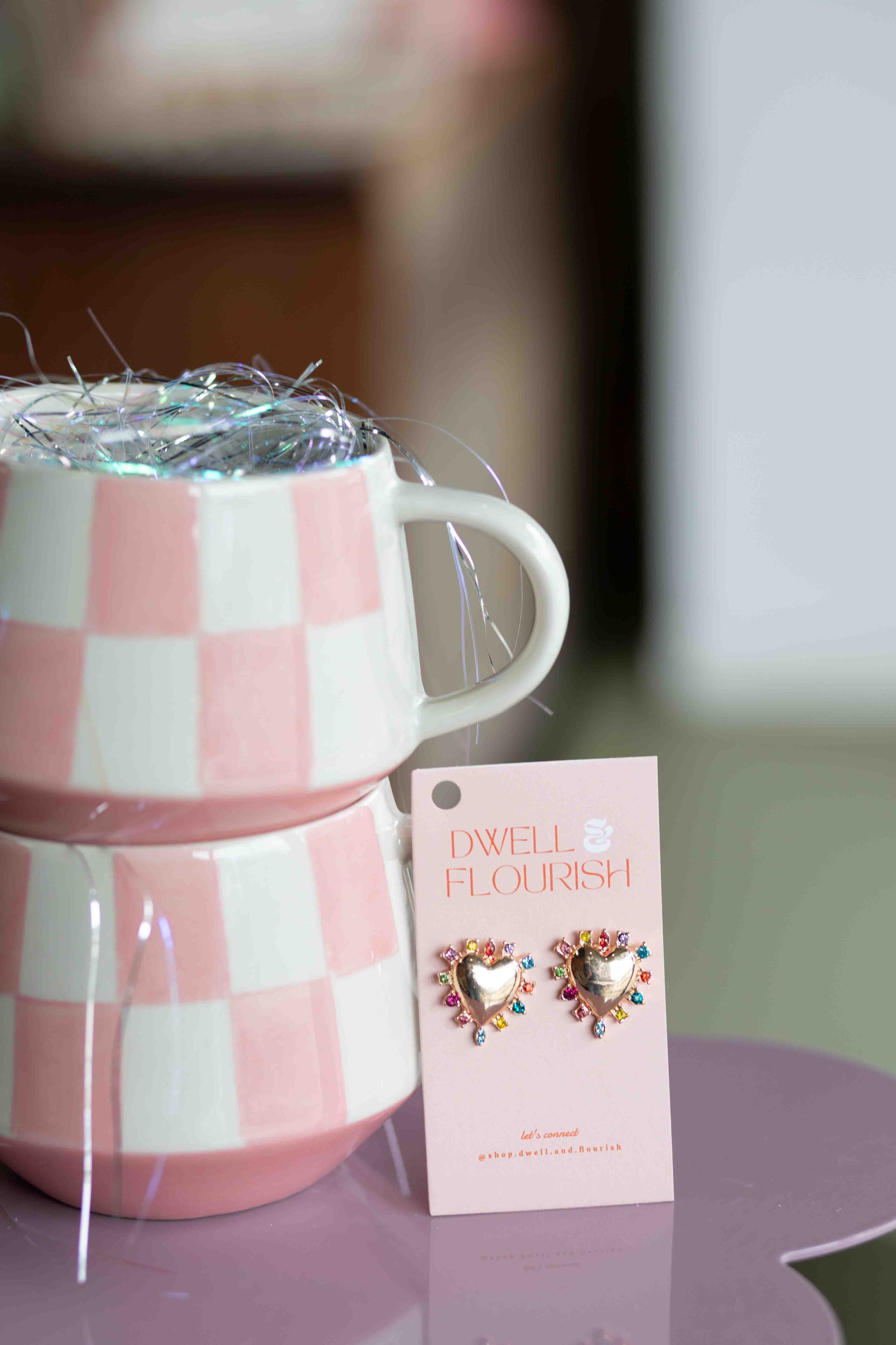 These fun gold heart studs are lined with whimsy colorful rhinestones! We love bright spin on a classic!