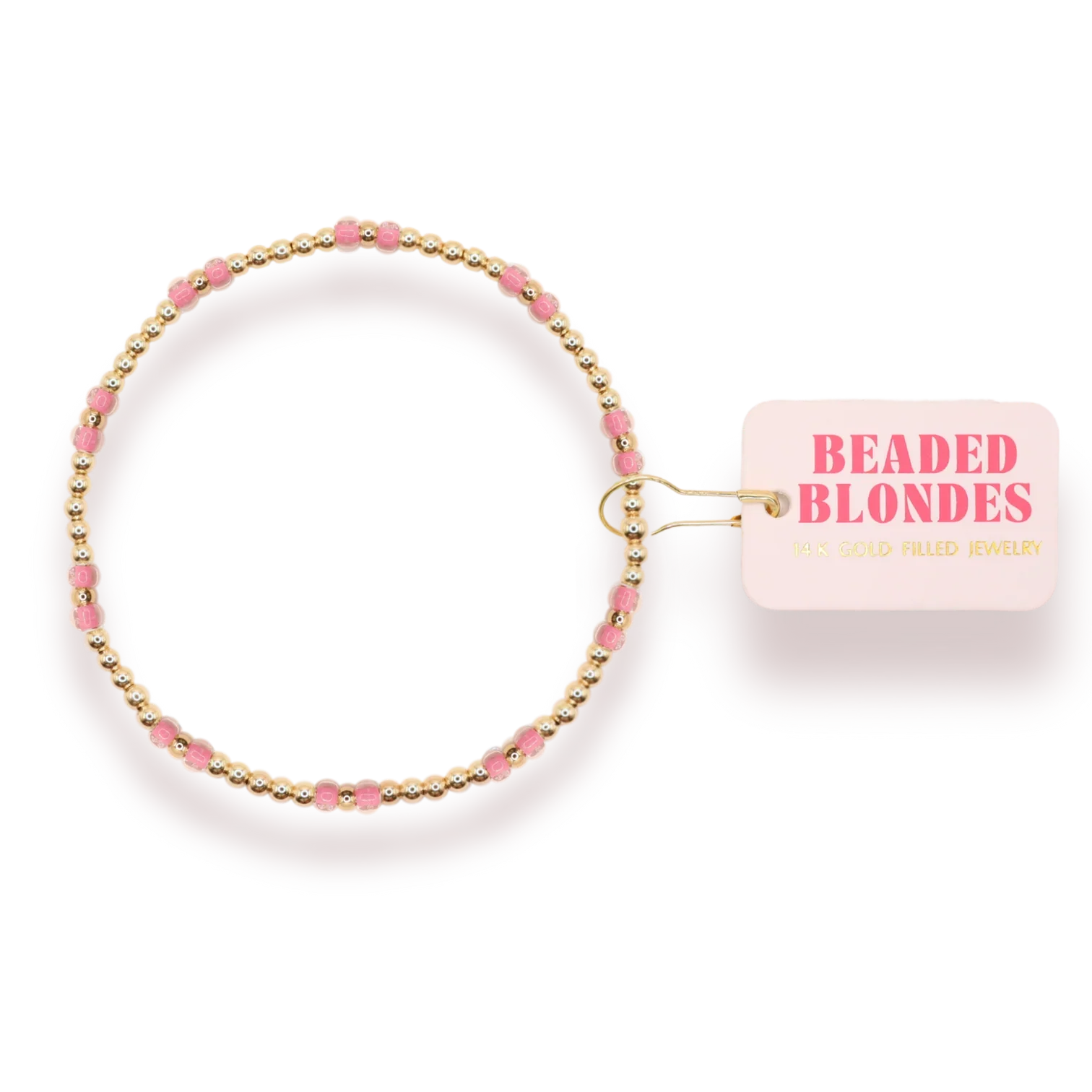 The rose pink Hazel bracelet is a mix of 2.5mm & iridescent Czech glass beads. Add it to your bracelet stack for a touch of unforgettable glamour!