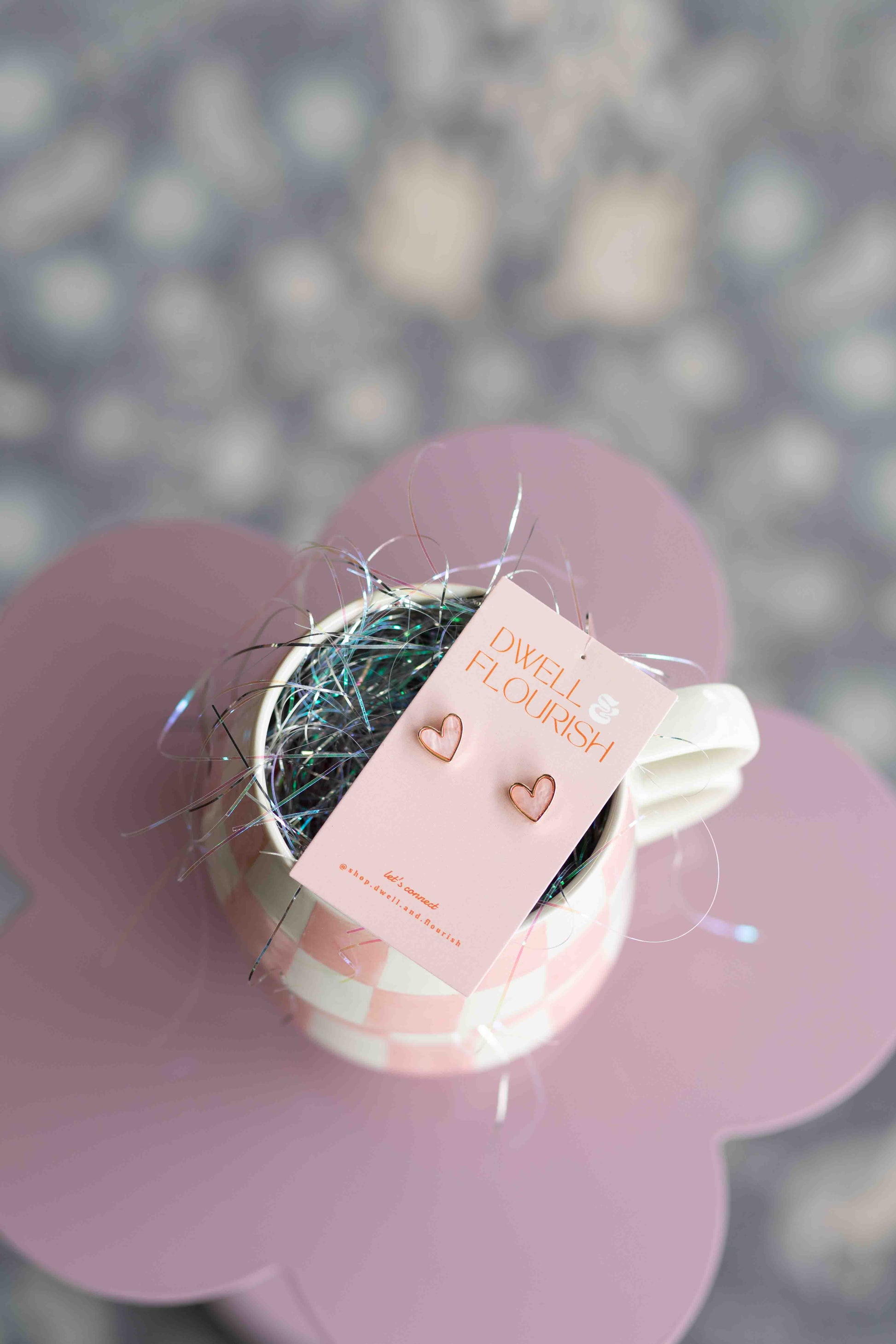 The petite pink heart stud earrings have an irridecent ballet pink center with a gold trim!